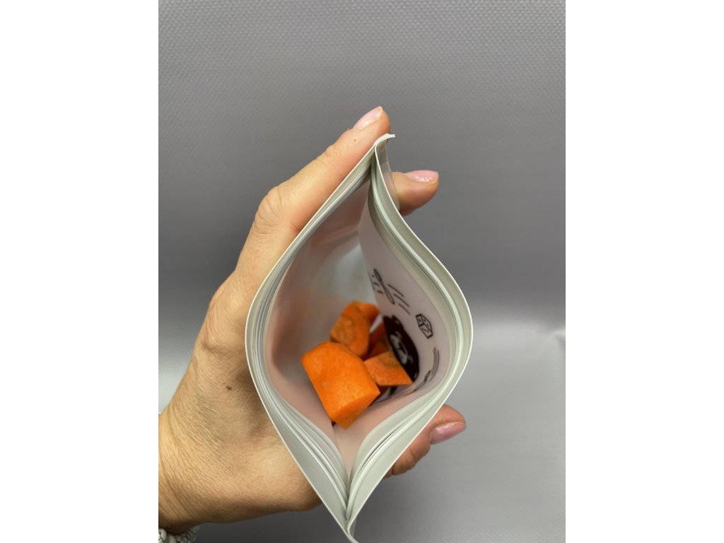 Plnitelná silikonová kapsička má objem 180 ml. Naplnit jí můžete ovocným pyré, zeleninovou směsí, masovou směsí, nebo jogurtem a dalšími mléčnými výrobky.