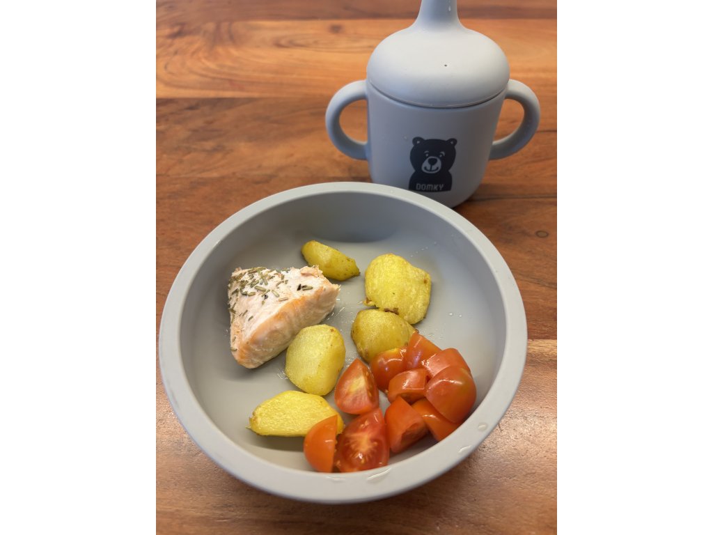 Praktický silikonový talířek pro děti v moderní šedé barvě je ideální pro první příkrmy i každodenní dětské stolování. Díky svému jednoduchému a funkčnímu designu podporuje děti při učení samostatného jídla a zároveň usnadňuje krmení rodičům.